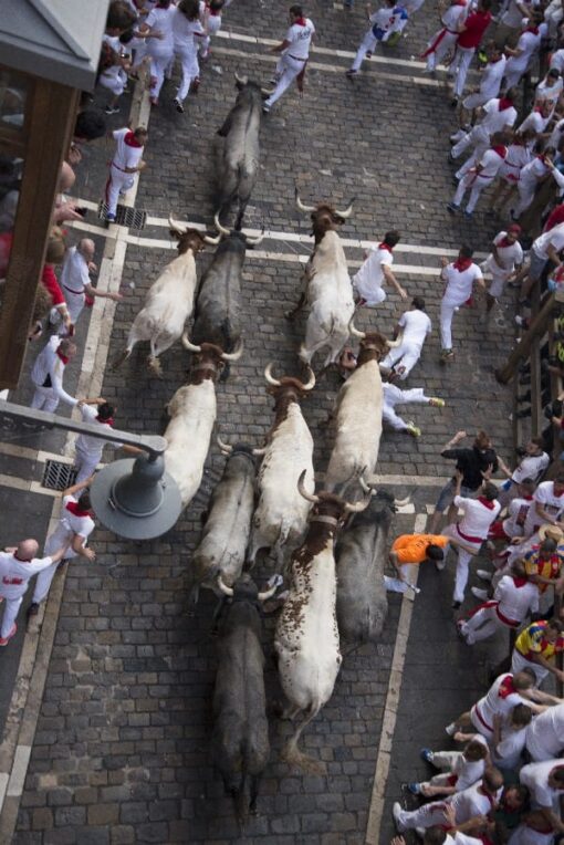 This third-floor apartment at Mercaderes 9 is one of our absolute favorite spots to watch the Running of the Bulls. From here, you’ll have a front-row view of the infamous Dead Man’s Curve — that heart-stopping moment when the bulls charge in from the right and try to make the tightest turn of the run. It’s pure adrenaline, and the energy is absolutely electric.
