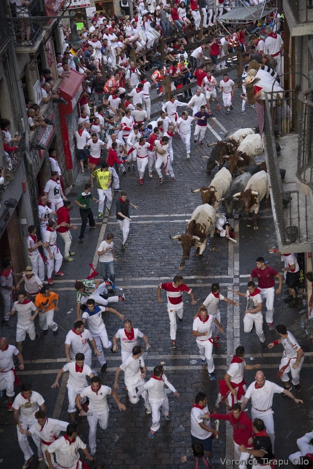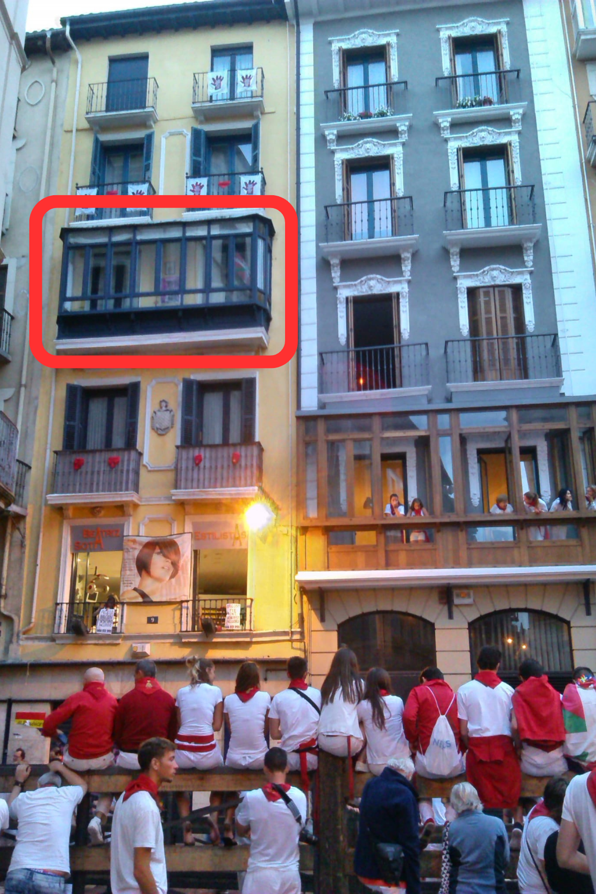 It is a bit tricky to reach this apartment because you will have to cross both of the 2 barricades of the run. The best way for you to get here is get yourself to Plaza del Castillo. Once there look for HOTEL LA PERLA, on the side of the hotel there is a small street that goes down, it is called “Chapitela street” you will find the barricades of the run, you will have to go under both.